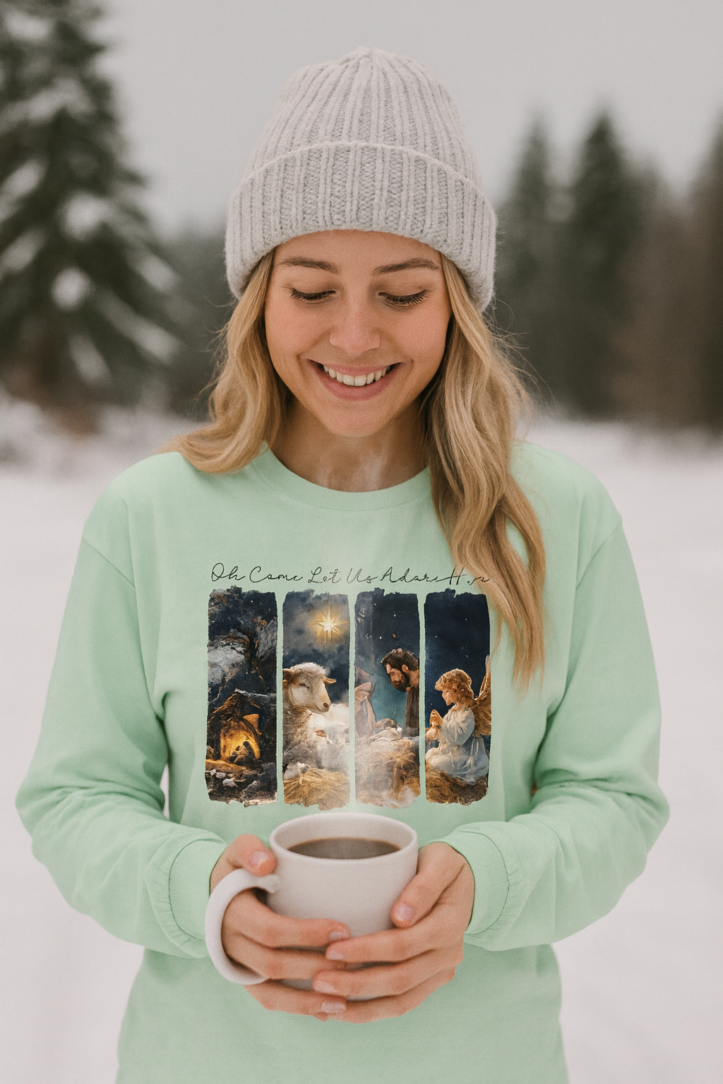 Our pieces are designed for the quiet moments as much as the big ones—Christmas Eve services, grocery runs, late-night cocoa by the tree, and everything in between. Each design is rooted in Scripture and created to gently turn hearts toward Jesus, not shout for attention.